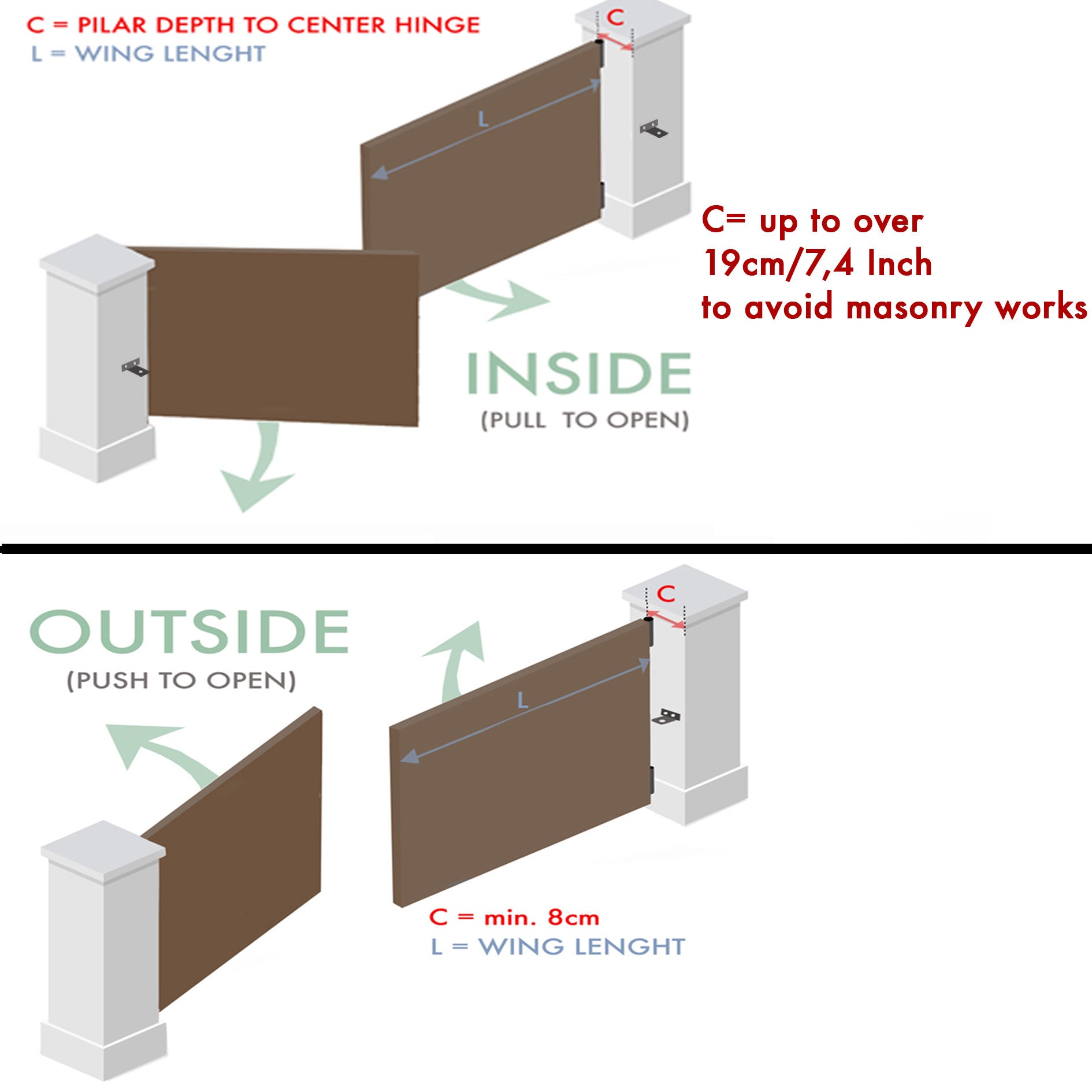 • Kompatibel mit nach innen und nach außen öffnendem Tor