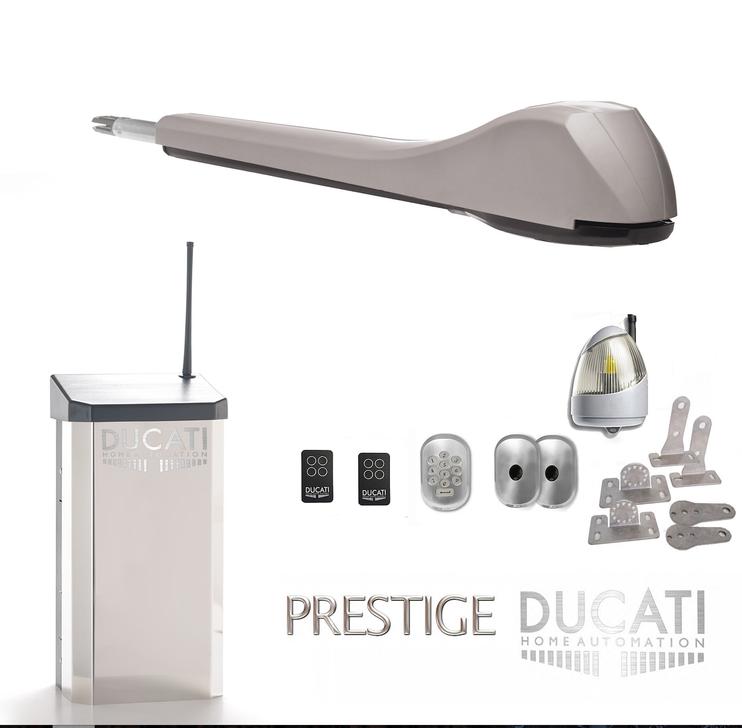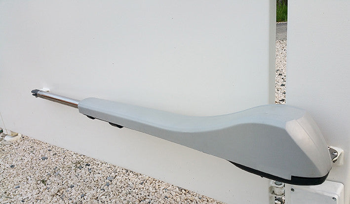 - Pair of stand-alone columns: one column is 120cm H with integrated key switch and infrared safety sensor (photocells). Second column is 75cm H with integrated infrared safety sensor version